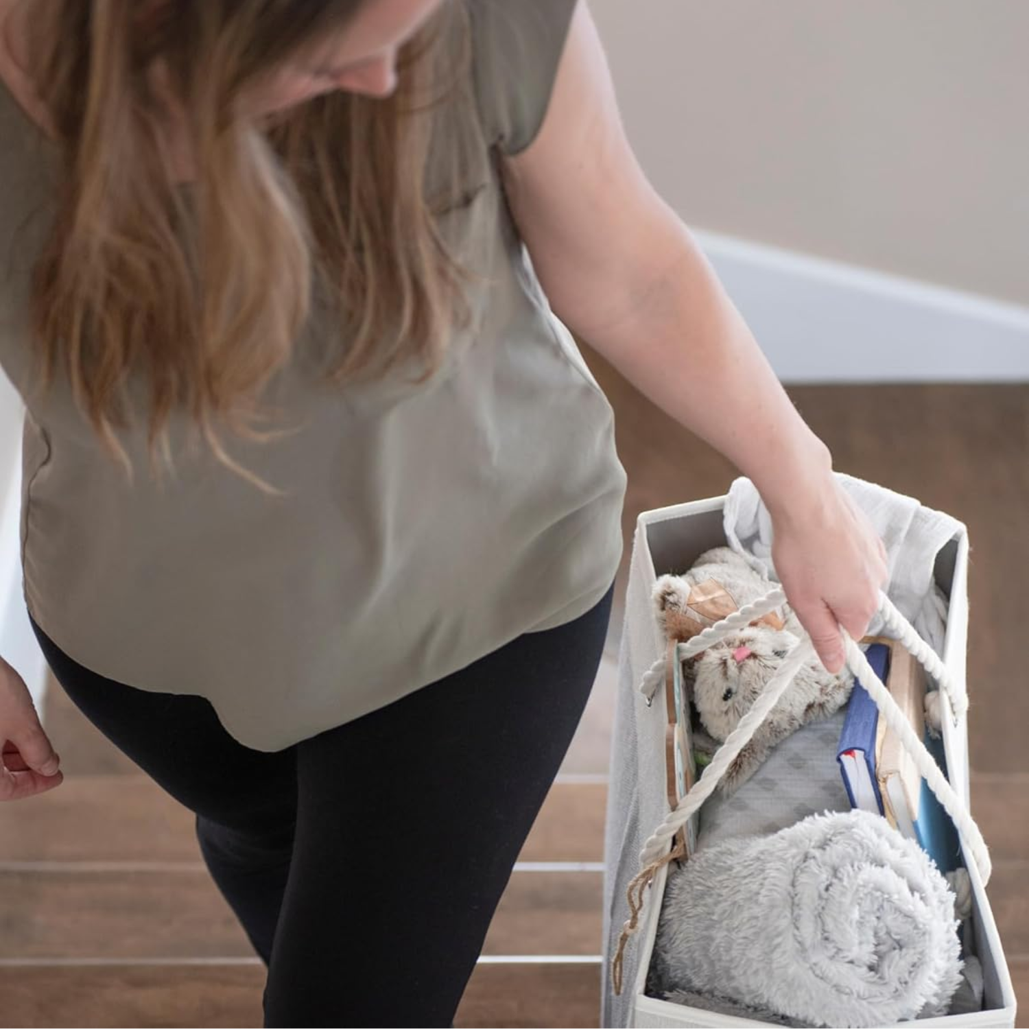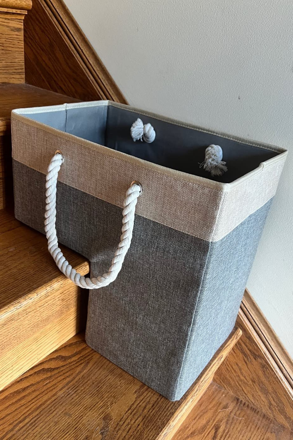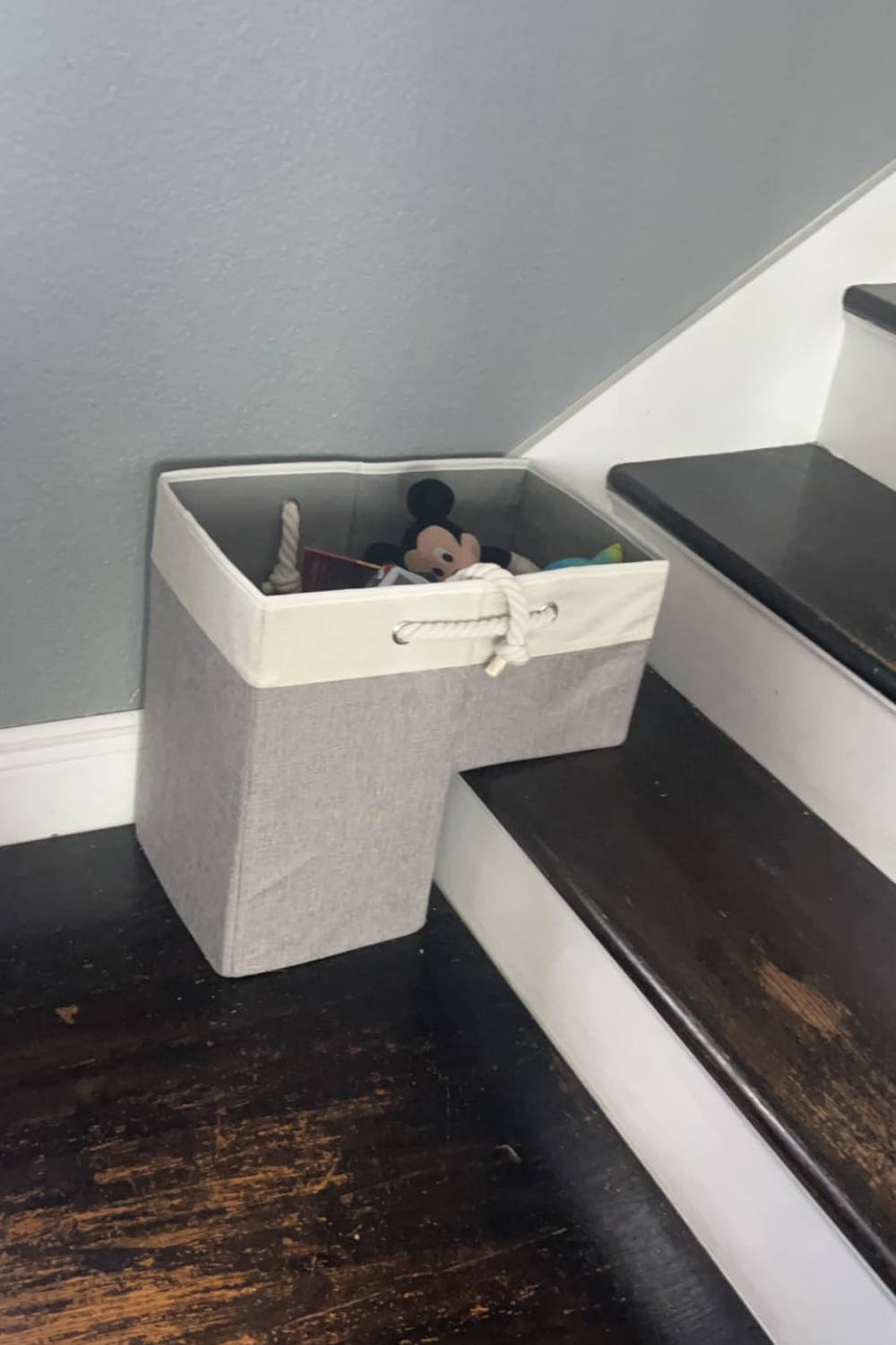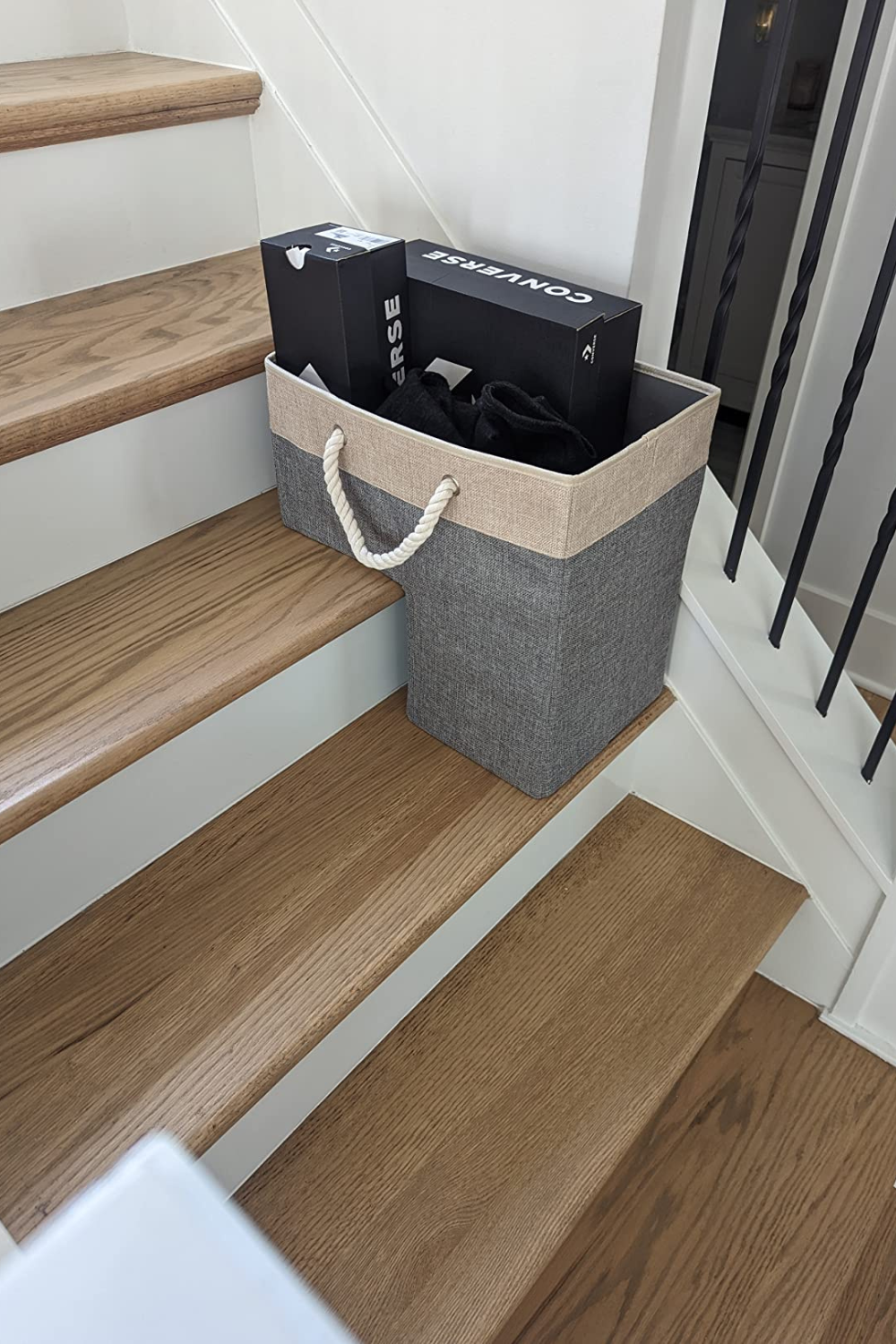 This stair basket is a parent’s best-kept secret to keeping stairs safe and mess-free.