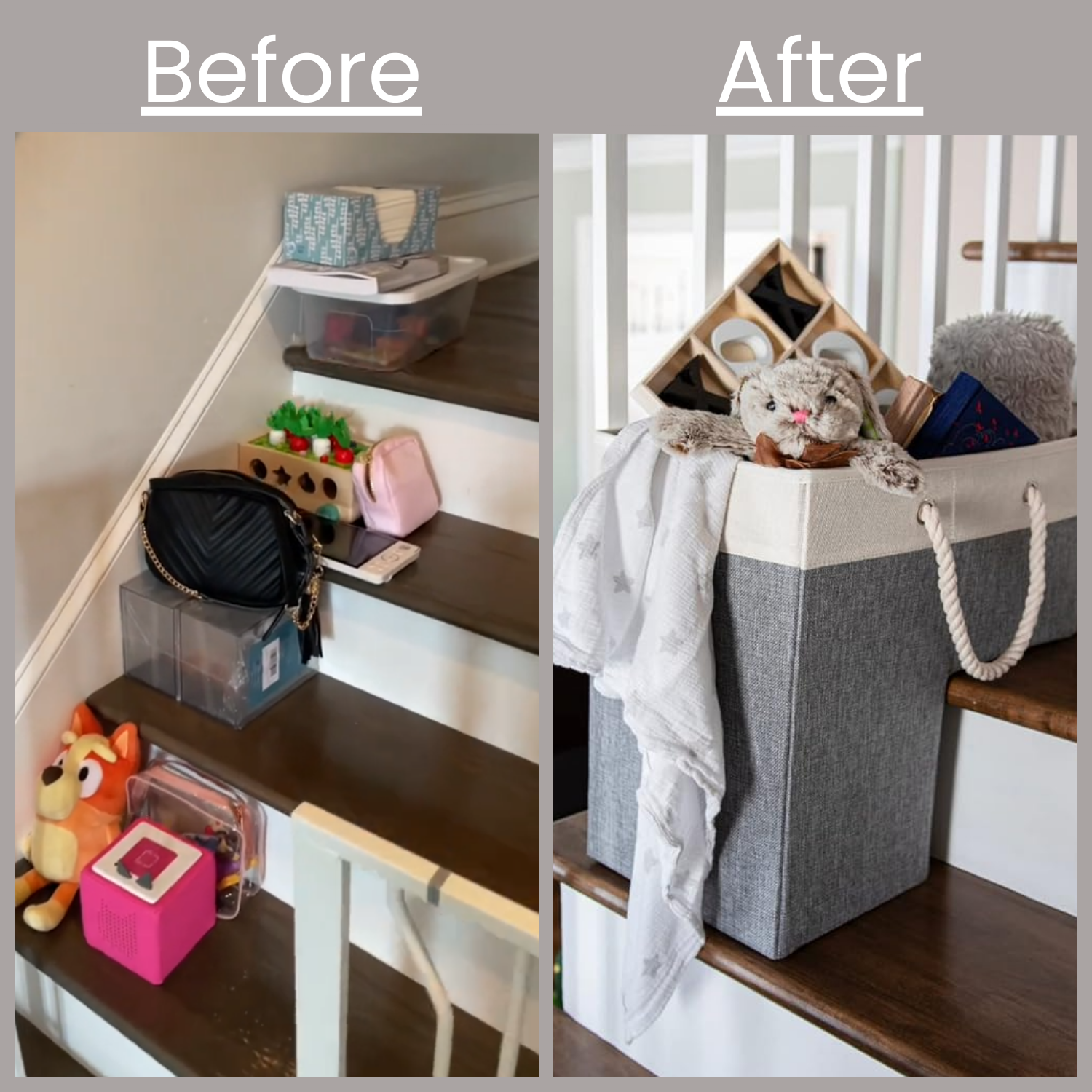 Transform your staircase in seconds. No more scattered mess or daily trips over toys and clutter. With the stair basket, everything has a place making your home safer, neater, and easier to manage.